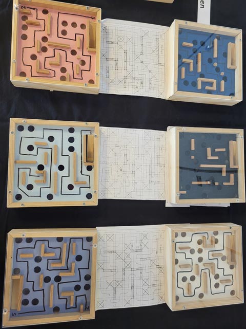 Im Erdgeschoss des Regos-Schulhauses zeigte die Oberstufe, was die Jugendlichen im laufenden Schuljahr gezeichnet und handwerklich gestaltet haben: Labyrinthe, Messer, Holzschatullen, ein selbst designter Hoody und vieles mehr. Die Rätsel-Bilder forderten die Besucher*innen auf, herauszufinden, was wohl dargestellt sein könnte.